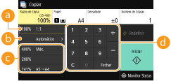 Pode ampliar ou reduzir cópias utilizando um rácio de cópia predefinido, como <A5->A4>, ou definindo um rácio de cópia personalizado em incrementos de 1%.