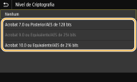 É possível mudar <Acrobat 10.0 ou Equivalente/AES de 256 bits> para <Acrobat 9.0 ou Equivalente/AES de 256 bits> com uma versão compatível diferente.