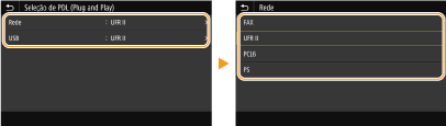 Selecione <Rede> ou <USB>