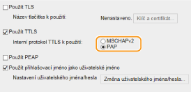 Zaškrtněte políčko [Použít TTLS] nebo [Použít PEAP].