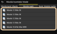 Ha a <Munkanapló megjelenítése> beállítása <Ki>, nem tudja megnézni a másolási feladatok naplóját. <Munkanapló megjelenítése>