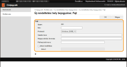 A megosztott mappa vagy az FTP-kiszolgáló címének bejegyzéséhez válassza a [Fájl] elemet.