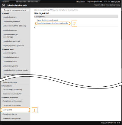Więcej informacji na temat podstawowych czynności wykonywanych w ramach konfiguracji urządzenia z poziomu Zdalnego interfejsu użytkownika, patrz Konfiguracja opcji menu z poziomu Zdalnego interfejsu użytkownika.