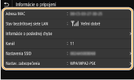 Položky <Stav bezdrôtovej siete LAN> a <Informácie o poslednej chybe> možno zobraziť z ponuky <Monitor stavu>.
