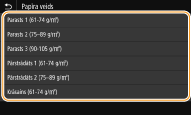 Kad ir reģistrēts noklusējuma papīra iestatījums, ievietojot papīru, netiek rādīts papīra iestatījumu ekrāns un vienmēr tiek lietots viens un tas pats iestatījums. Ja ievietosit cita formāta vai veida papīru, bet nemainīsit papīra iestatījumus, iekārta, iespējams, nedrukās pareizi. Lai novērstu šo problēmu, 3. darbībā izvēlieties <Norādīt, ievietojot papīru> un pēc tam ievietojiet papīru.