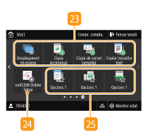 Mostra les "Opcions preferides" desades per a la còpia, l'enviament de fax i la lectura. Addició de botons a la pantalla Inici