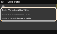 <Acrobat 10.0 o equivalent/AES de 256 bits> es pot canviar a <Acrobat 9.0 o equivalent/AES de 256 bits> amb una versió compatible diferent.