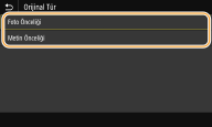 Yazdırılacak resme bağlı olarak orijinalin türünü seçebilirsiniz.