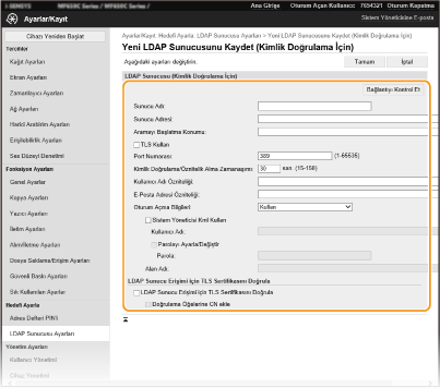 [LDAP Sunucusu (Arama İçin)] veya [LDAP Sunucusu (Kimlik Doğrulama İçin)] için [Yeni Sunucu Kaydet] öğesine tıklayın.