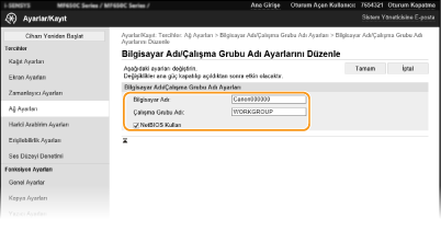 Ağdaki makinenin adını ve bu makinenin ait olduğu çalışma grubunun adını belirtin. Ortamınızda çalışma grubu yoksa Windows'da bir çalışma grubu oluşturun ve bu çalışma grubunun adını girin.