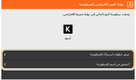 إذا تم عرض رسالة عند استلام الجهاز لرسالة فاكس/فاكس إنترنت أو في حالة تعيين الإخراج التلقائي للتقارير، فسوف يتم تخزين رسائل الفاكس/فاكس الإنترنت والتقارير المستلمة في الذاكرة حتى لا تظهر بشكل باهت بعد طباعتها. لمتابعة الطباعة حتى عند انخفاض المقدار المتبقي من الحبر في خرطوشة الحبر، اضبط <متابعة الطباعة مع انخفاض الخرطوشة> على <تشغيل>. <متابعة الطباعة مع انخفاض الخرطوشة>