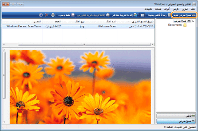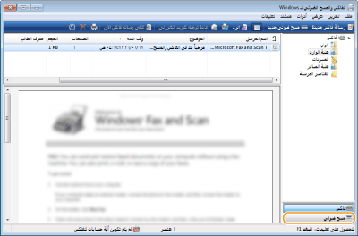عند اكتمال المسح الضوئي، يتم عرض المستند الممسوح ضوئيًا في قائمة الملفات على شاشة [الفاكس والمسح الضوئي لـ Windows] وحفظه في المجلد [المستندات الملتقطة بالماسح الضوئي] الخاص بـ [المستندات].