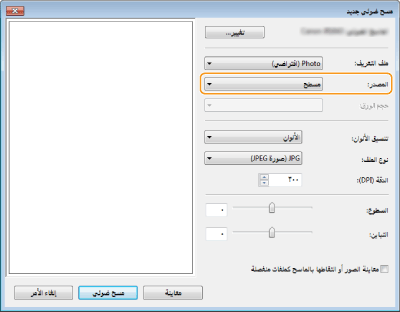 يتيح لك تحديد نوع المستند الأصلي من القائمة المنسدلة [ملف تعريف] إجراء تعديلات للحصول على جودة الصورة المثلى. بالنسبة للمستندات الأصلية التي تتكون بشكل أساسي من نص، حدد [مستند]. بالنسبة للمستندات الأصلية التي تشتمل على صور فوتوغرافية فقط، حدد [صورة (افتراضي)].