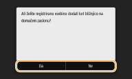Če izberete <Da>, se prikaže sporočilo. Preverite sporočilo in nato izberite <Vključeno>. Registrirana kombinacija nastavitev je na zaslon Domov dodana kot bližnjični gumb.