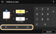 Velikosti papirja, ki jih registrirate po zgoraj opisanem postopku, lahko prikažete tako, da na zaslonu za izbiro velikosti papirja za kaseto za papir ali večnamenski podstavek izberete <Po meri>.