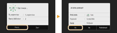 Originali so optično prebrani in čakajo na obdelavo. Izberite dokument, ki ga želite preklicati, nato pa izberite <Preklic> <Da>.