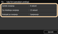 Napravo lahko nastavite tako, da samodejno sprejme fakse, ko dohodni klic zvoni določen čas. <Preklop na samodejni SPR>