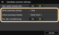 Izberite <Vklopi> v možnosti <Upor. samod. ponovno izbir.>