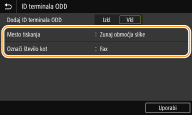 Izberite <Vklopi> v <Dodaj ID terminala ODD>