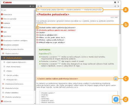 Kliknite da biste prikazali informacije o tome kako pregledati Korisnički vodič, kako pretraživati itd.