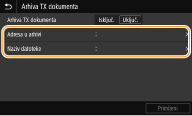 Odaberite <Uključ.> u <Arhiva TX dokumenta>.