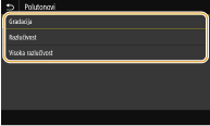 Pomoću postavke <Fino podešav.> gustoću tonera možete prilagoditi na jednu od tri razine gustoće: velika gustoća, srednja gustoća i mala gustoća.