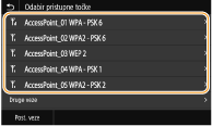 Možete potražiti bežične usmjerivače (ili pristupne točke) dostupne za povezivanje te odabrati jedan sa zaslona uređaja. Za mrežni ključ unesite ključ za šifriranje ili lozinku. Prije nego što odaberete bežični usmjerivač, provjerite i zapišite potrebne podatke za postavljanje, uključujući SSID i mrežni ključ (