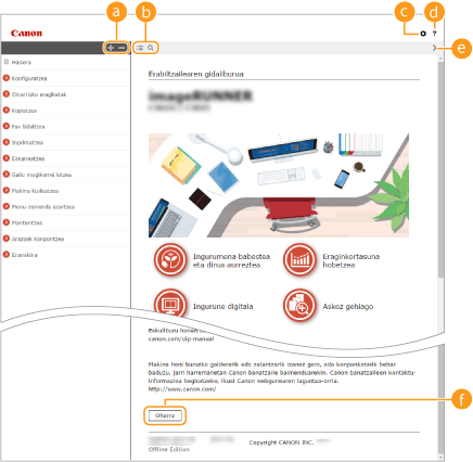 Ikonoa sakatzen duzunean, baliteke orria iluntzea eta pop-up leiho bat agertzea. Orrira itzultzeko, sakatu [Itxi] pop-up leihoan.