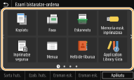 Etxea pantailari lasterbide-botoiak gehitzeko aukera duzu <Kopiatu>, <Faxa> eta <Eskaneatu> bezalako sarritan erabilitako funtzioentzat. Adibidez, lanak bizkorrago eta eraginkortasun handiagoz burutzeko aukera duzu botoi bakar bati ezarpen-sekuentzia bat esleituz (adibidez: "Original baten bi aldeak eskaneatu, oso konprimatutako PDF fitxategi gisa gorde eta posta elektronikoaren bidez bidali").