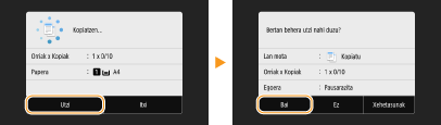 <Hasi> hautatu bezain pronto kopiatzea ezeztatu nahiez gero, hautatu <Utzi> pantailan edo sakatu