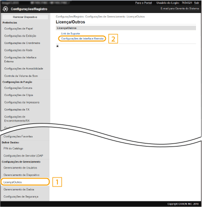 Para mais informações sobre as operações básicas a serem executadas ao configurar a máquina a partir da Interface Remota, consulte Configurando as opções de menu a partir da Interface Remota. |