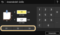 Sie können bis zu drei häufig verwendete anwenderdefinierte Papierformate speichern.