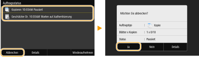 Überprüfen Sie vor dem Abbrechen den Status des Kopierauftrags
