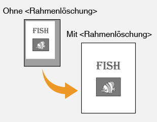 Die Breite des zu löschenden Rahmens vergrößert bzw. verringert sich je nach der Einstellung für <Kopierfaktor>. <Rahmenlöschung> steht bei Verwendung von <N auf 1> nicht zur Verfügung. |