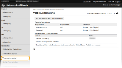 Melden Sie sich bei Remote UI an (Starten von Remote UI [Statusmonitor/Abbruch]  [Verbrauchsmaterial]