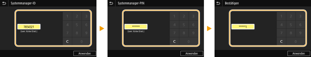 Wenn Sie die Einstellungen von Systemmanager-ID und PIN abbrechen möchten, löschen Sie die in  eingegebenen Informationen, und wählen Sie <Anwenden>, während die Felder leer sind.