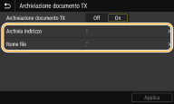 Quando non si utilizza la funzione di archiviazione dei documenti inviati, selezionare <Off>.