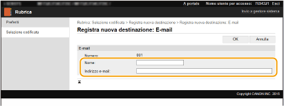È possibile specificare anche [TX in ECM] e [Velocità] da <Impostazioni fax> ( <Invia>) nel pannello operativo. Tuttavia, le impostazioni configurate da <Rubrica> sono abilitate per le impostazioni dettagliate delle destinazioni nella Rubrica. |