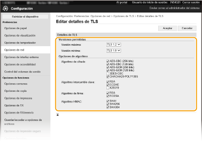 Especifique [Versión máxima] y [Versión mínima] de TLS.