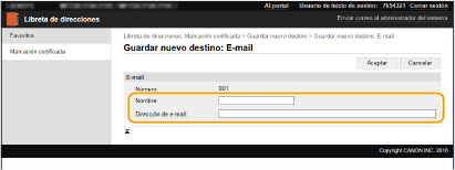 Puede usar el ordenador para registrar destinos en la libreta de direcciones del equipo y editar la información de los destinos registrados. Especifique la carpeta compartida o el destino del servidor FTP aquí.