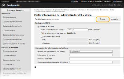 Algunas de las opciones solo pueden cambiarse si ha iniciado sesión en el Modo de administrador del sistema. Algunas opciones podrían requerir unas operaciones distintas a las descritas en este procedimiento. |
