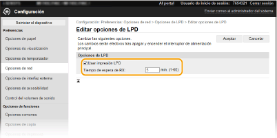 Seleccione la casilla de verificación para imprimir a través de LPD. Cuando no utilice la impresión LPD, quite la marca de la casilla de verificación.