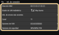 Visualización de la dirección MAC y la información para LAN inalámbrica