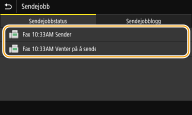Når <Vis jobblogg> er stilt inn til <Av>, kan du ikke kontrollere kommunikasjonloggene. <Vis jobblogg> |