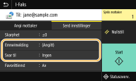 Hvis du valgte <LDAP-server> eller <Angi meg selv som mottaker>, vises mottakeren i feltet <Til>.