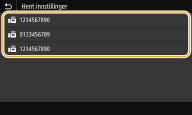 ![]() | Du kan hente mottakere som er angitt tidligere. Når du angir en tidligere brukt mottaker, bruker maskinen også de samme faksinnstillingene som du brukte forrige gang du sendte dokumenter til den mottakeren, for eksempel tetthet. |