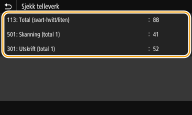 Du kan kontrollere totalantallet sider som er skrevet ut av maskinen. Disse totalsummene inkluderer fakser, rapporter og lister i tillegg til kopier og utskrifter av data fra datamaskiner.