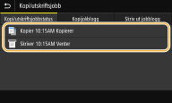 Kontrollere utskriftsstatusene1 | Velg dokumentet som du vil kontrollere statusen for i <Kopi/utskriftsjobbstatus>-kategorien. ![]() Viser detaljert informasjon om dokumentet. |