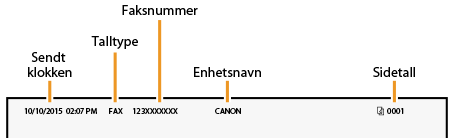 Registrer faksnummeret og enhetsnavnet på maskinen din. Denne informasjonen skrives ut øverst på hver side som er sendt fra maskinen.