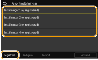 För att ändra innehållet i en registrerad inställning väljer du inställningen och sedan <Redigera>.